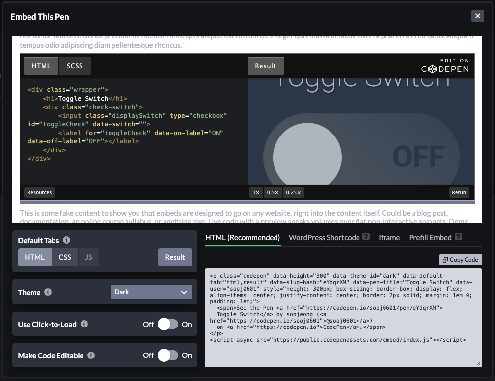 가끔 티스토리에 작성한 코드에 대한 결과를 그때그때 보여주고 싶을 때가 있어서 찾아보다가 코드펜의 임베드 기능을 사용하여 티스토리에 올리는 방법을 알게되어 기록하려고한다.