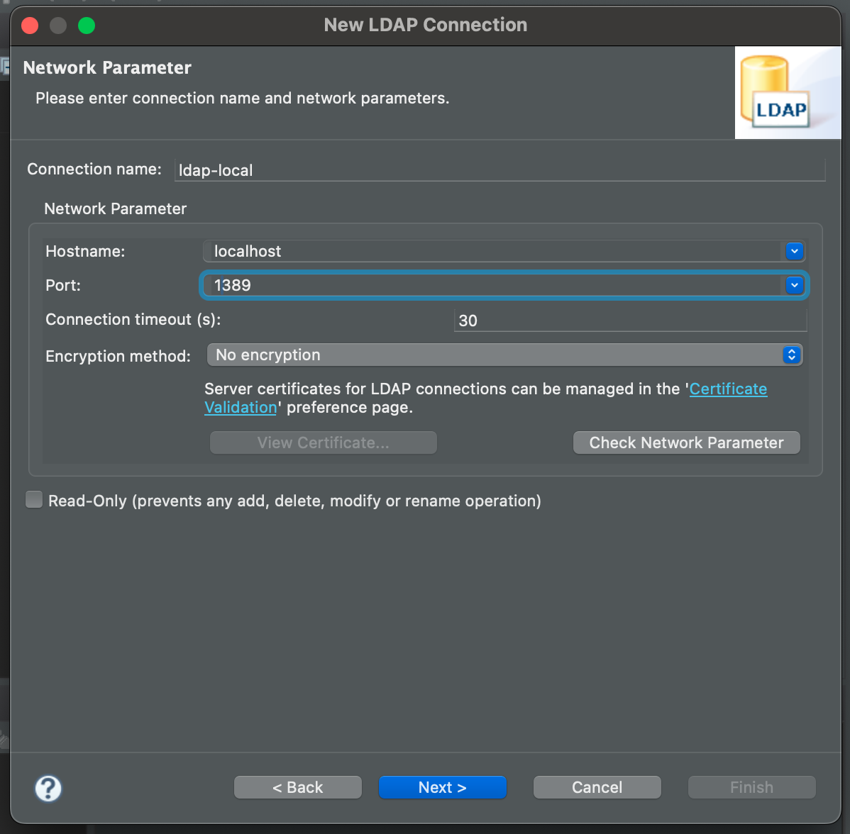 docker desktop, ApacheDirectoryStudio 기준(설치 과정 생략)