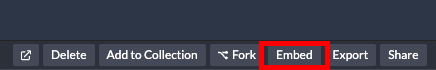 작성한 코드를 저장하고 result 탭에서 결과를 확인 한 후, 결과가 만족스럽다면 오른쪽 아래의 Embed 버튼을 클릭한다.